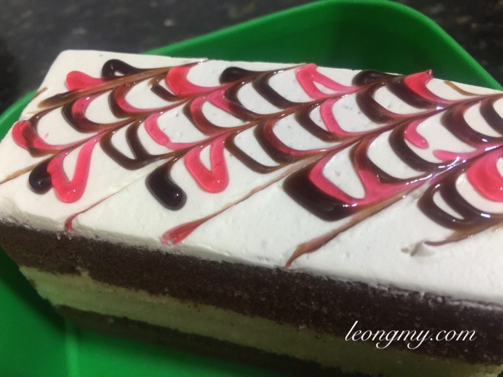 This cake’s thin icing was just nice and blended with the sweet syrup ribbons as the design, it tasted good.